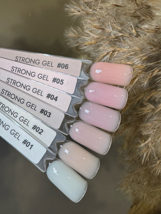 Гели нового поколения STRONG от ONE NAIL - идеальный баланс прочности и гибкости! Забудьте об отслойках у кутикулы! Не бойтесь тонкого покрытия! Никаких больше сколов и трещин! Надежные ногти без компромиссов на любой длине. 1. Прочные, но эластичные